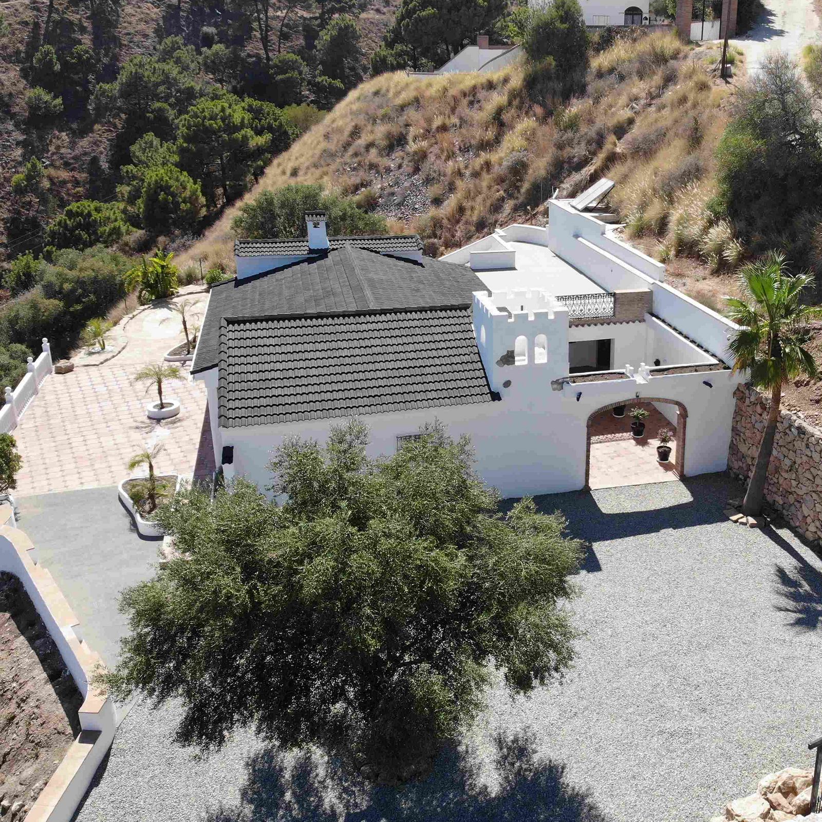 The finca has been completely refurbished – all installations have been replaced, a brand-new roof has been installed, and the interiors have been modernised to a high standard. The property is sold unfurnished; the furniture shown in photos is a suggested interior design proposal. The modern kitchen is equipped with high-quality AEG appliances, combining functionality and contemporary style.