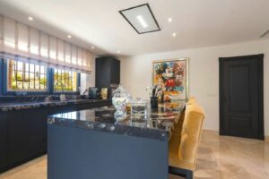 The light, spacious living room flows seamlessly into a terrace that spans the entire width of the villa. Here, the boundary between indoors and outdoors fades away, and the spectacular sea view becomes your daily painting. The state-of-the-art open kitchen, equipped with high-quality Siemens appliances and a generous cooking island, is the beating heart of the house – a dream for every bon vivant and host.