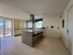 The kitchen is spacious and functional, featuring a pantry area and direct access to the garden and parking area—ideal for daily living or entertaining guests with ease.