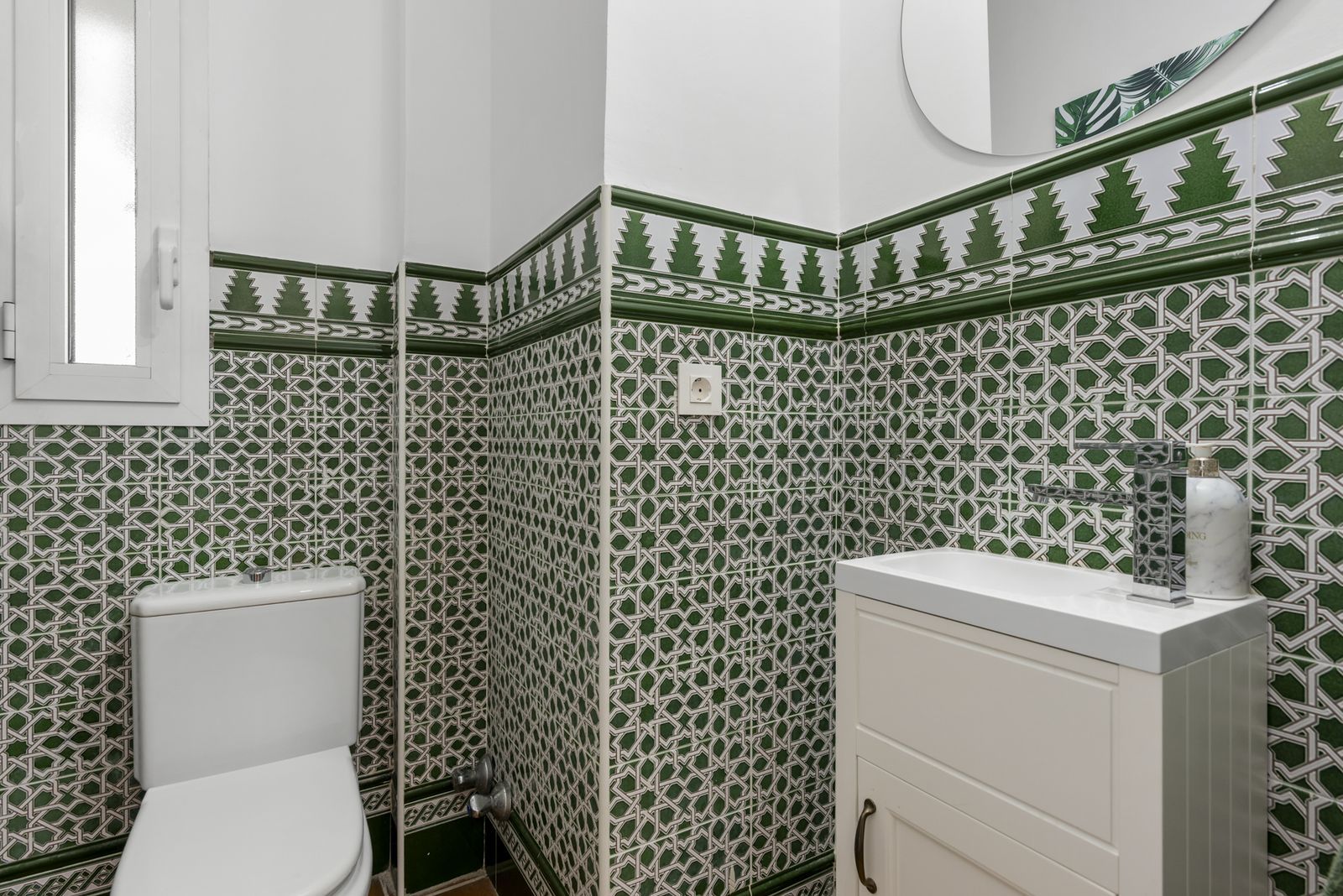 Ascending the staircase, two additional bedrooms reveal themselves, each exuding comfort and elegance. The master suite boasts an ensuite bathroom featuring a luxurious bathtub and shower, accompanied by a generous private terrace boasting great sea views. The fourth bedroom provides a cozy retreat with a double bed and a cute lounge area with a sofa.