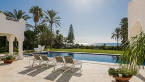 The story of this splendid beachside villa leaps off the pages of a novel, for it was originally built for the daughter of a Spanish head of state, who settled here in favour of Madrid in the 1950s, attracted by the benevolent climate and lifestyle of Marbella. Already a burgeoning centre of refinement loved by an international set, the town provided her with the company of many of Europe, and indeed the world’s, most elegant and fascinating personages, from royals and business tycoons to top celebrities.
