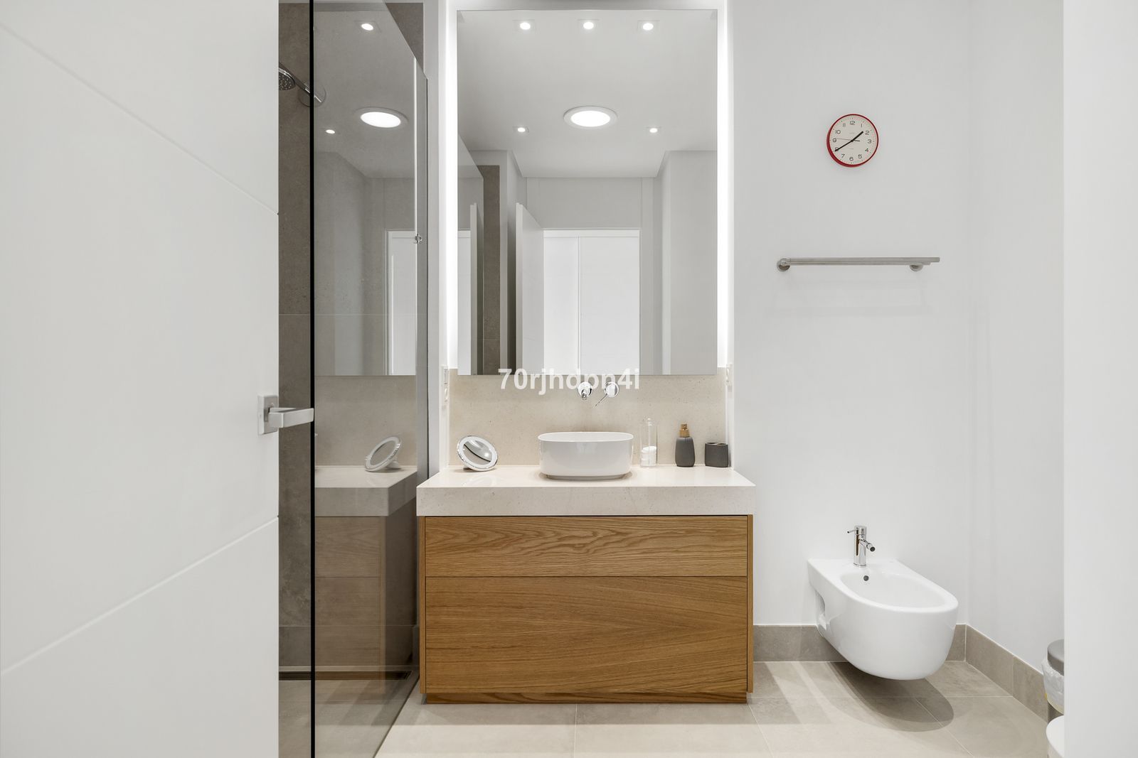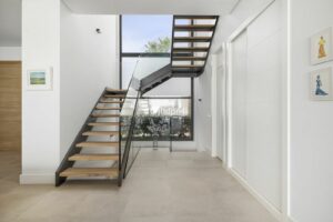 Ground Floor: A spacious open-plan living area flows seamlessly into the modern kitchen, which is fully equipped with high-end NEFF appliances and includes a practical utility room. Large floor-to-ceiling windows ensure an abundance of natural light and offer direct access to the terrace. On this level, there is also a generous guest bedroom with fitted wardrobes and an en-suite bathroom.