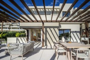 This brand new luxurious detached villa is in an excellent location in the area of The New Golden Mile, Estepona. The exclusive house is facing the sea, and has direct access to the boardwalk through a private gate. It has easy access to Estepona and Puerto Banús, which are less than ten minutes away by car.