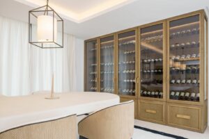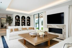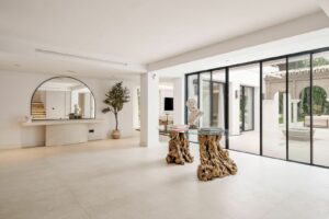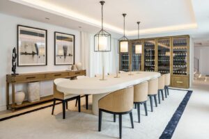 These include a huge garage, a driveway with a car turning plate, a spa with sauna and steam room, an state of the art indoor gym as well a home cinema – all with direct access to the garden.