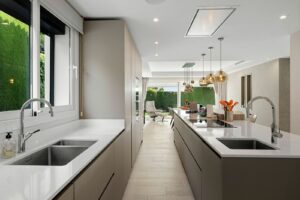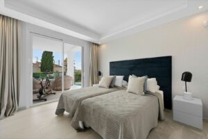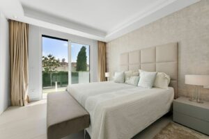 Welcome to this great fully refurbished family villa in the Golf Valley. As you enter the living, dining and open plan kitchen you are greeted with an abundance of light and space. From here you have direct access to the beautifully manicured gardens, gazebo, heated pool and open terraces with shaded large sails for extra comfort. The house is well thought out creating private space on the master level and then you have 2 wings ideal for guest. There are 5 bedrooms and 4 bathroms, 3 of which are onsuite. On the living room level you have a laundry area and a guest toilet near by. The house was completely refurbished 6 years ago using natural colors to create a homely feeling. The house is complete with underfloor heating throughout, airzone ac systems both powered by an aerothermic system. This house is also ideal as a rental property due to its 5 bedrooms and distribution.