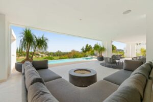 Introducing your new home, a striking contemporary villa in the heart of Nueva Andalucía, enjoying a privileged frontline golf position. With clean architectural lines, expansive terraces, and floor-to-ceiling windows, this home is designed to maximize natural light and uninterrupted views of the fairways, offering a seamless blend of indoor and outdoor living.