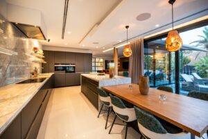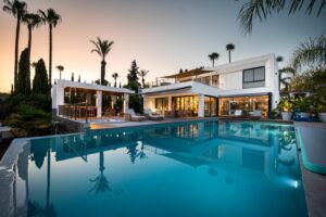 This is a luxury home in Marbella’s most exclusive gated community. The villa is spread over three levels and combines modern design with Mediterranean charm. It offers panoramic views of the golf course and mountains, with a south-facing position that ensures natural light throughout the day. Inside, the home features spacious open-plan living, a contemporary kitchen, and seamless access to the terrace with pool, jacuzzi, and outdoor kitchen.