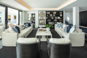 Among its features are a cinema room, a spa area with a jacuzzi, sauna, and Turkish bath, as well as a treatment room. It also has a private paddle court, ideal for those who enjoy sports at home.
