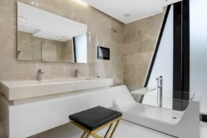 Nestled in the prestigious enclave of La Cerquilla, Villa La Cerquilla is a sanctuary of contemporary luxury surrounded by the beauty of Marbella’s Golf Valley. Behind its private gates, the residence opens onto five generous double bedrooms, including a refined master suite with its own bathroom. For greater versatility, a separate guest or staff apartment and a dedicated service room provide comfort and privacy for every lifestyle.