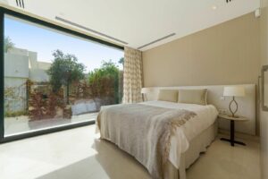 Spread across three levels, the villa offers five luxurious bedrooms and seven bathrooms, including a master suite with a private terrace and spa-inspired bathroom. The interiors feature a spacious open-plan living area, a designer kitchen with sleek finishes, and a dining space perfect for entertaining. A private home gym, wine bodega, and elegant lounge areas elevate the lifestyle experience, ensuring comfort and sophistication at every turn.