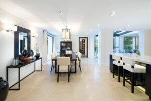 The villa's architecture is inspired by traditional Andalusian houses, featuring a hexagonal structure that houses the intimate living area. The rest of the living and dining area are seamlessly connected through the open plan layout. The interior design of the villa is nothing short of classy, with a contemporary twist that exudes luxury and elegance.