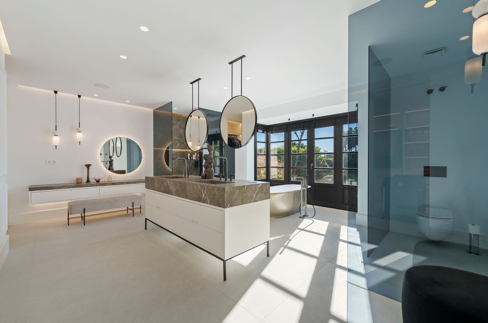 Set on a completely secluded plot, the arrival is framed by majestic, centuries-old olive trees that instantly establish a sense of prestige and tranquillity. The villa offers five beautifully appointed bedrooms, all luxurious en-suite bathrooms, crowned by an indulgent master suite featuring a private dressing room, and direct access to a serene terrace immersed in nature, yet with open views across the golf course.