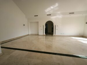 This classic-style house is located in a group of villas with private access in the heart of the Golf Valley in Nueva Andalucía. The villa is distributed on two large floors. The main entrance gives access to a large living room with very bright fireplace from which you can enjoy wonderful panoramic views of La Concha. The living-dining room has direct access to the garden, the pool and an extensive garden with a barbecue area that allows you to enjoy the maximum leisure time outdoors.
