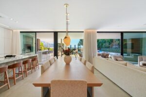 An infinity pool that overlooks the La Concha mountain is perfect for dips during warm summers. The ample plot size and manicured gardens create an ideal atmosphere that provides privacy and tranquillity. The interiors have been curated to display fantastic furniture and finishings, creating an aesthetic yet practical living space. The open-plan living, dining and kitchen have direct terrace access, allowing to maximise indoor-outdoor living. Each bedroom has been elegantly designed to not only serve as a fashionable space but one that exudes comfort, acting as the perfect space to unwind and relax. With its prime location, fantastic interiors and ample terraces, Villa Layla will impress all who visit.