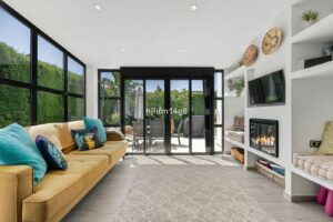 One of the villa’s most charming features is a beautiful, light-filled room adjacent to the kitchen — full of windows and character, complete with a fireplace and direct access to the garden. This versatile space can serve as a cosy reading room, TV lounge, children’s playroom, or even an additional bedroom.