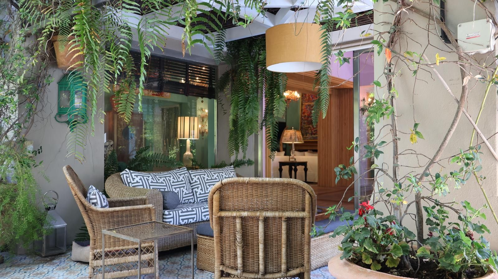 The house is very special and was built and designed according to the personalized project which differs it from the rest of its kind. The materials used during the construction were brought from other parts of the world, which makes the house unique. It comprises on the ground floor an entrance hall with cathedral height ceiling, a fully equipped open plan kitchen, two bedrooms with en-suite bathrooms and a lounge/dining room with access to the covered porch with sitting and dining areas decorated with a fountain and climbing plants.