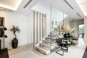 This outstanding villa combines cutting-edge design with one of the most sought-after locations in Marbella – the prestigious Golden Mile, only 150 metres from the Mediterranean.