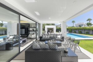 Situated within the exclusive gated enclave of Altos de Puente Romano, this exceptional contemporary villa offers the perfect blend of refined luxury and Mediterranean sophistication.