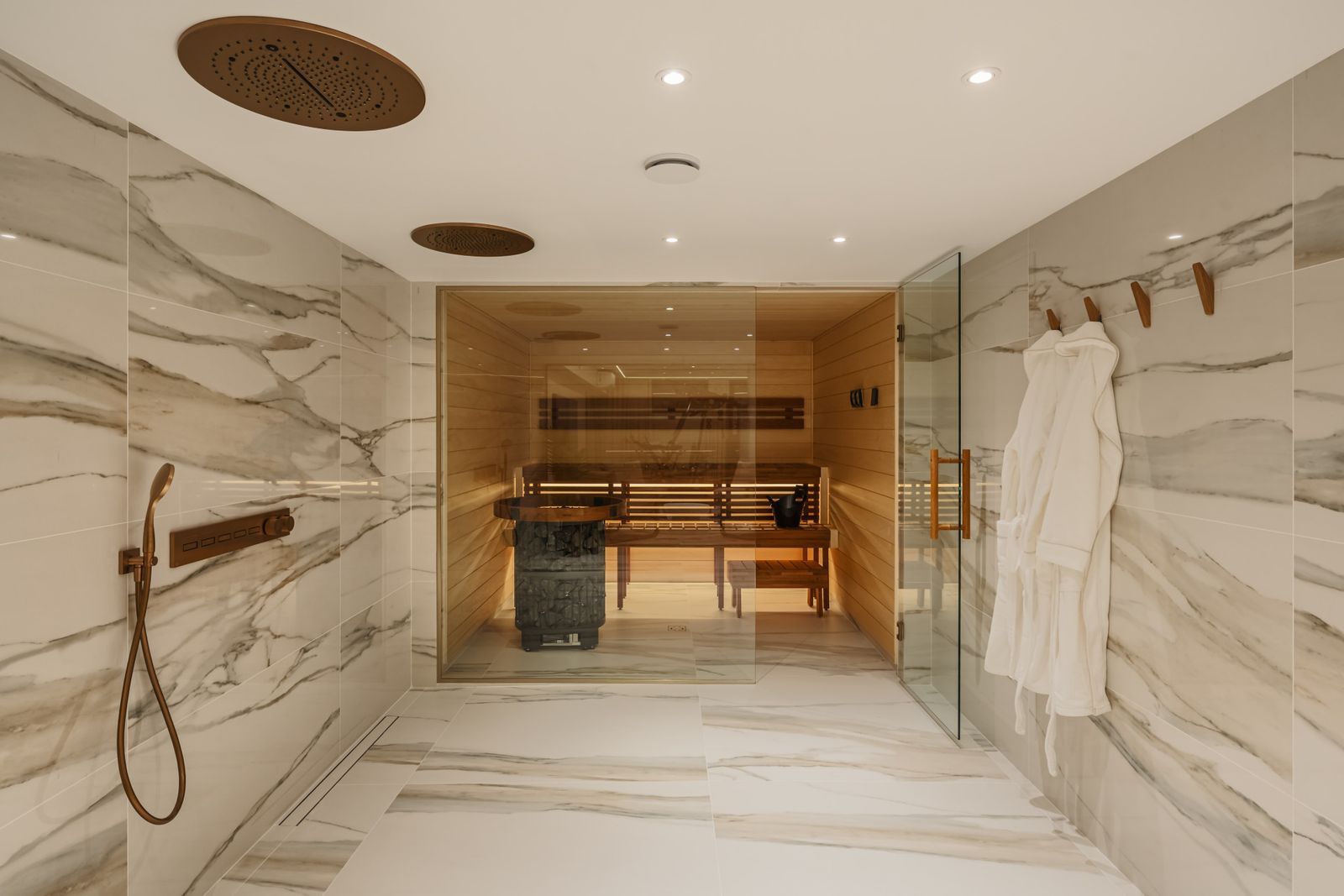 At the basement, you will find a cinema room, perfect for movie nights, and a sauna, ideal for ultimate relaxation, ensuring an exceptional living experience.