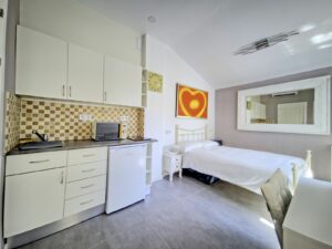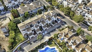 The property is just a five-minute drive or a 25-minute walk from the famous Puerto Banús marina and only a few minutes by car from Marbella’s Old Town. Everyday amenities are close at hand, with a Mercadona supermarket within the community and a bus stop just a minute away.