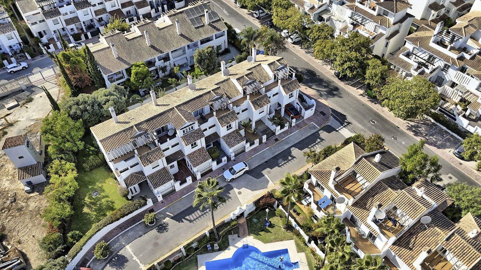 Other features include Marbella flooring throughout, air conditioning in every room, and high-speed fibre optic Wi-Fi. The property is situated on a quiet street within the urbanization with just five houses, offering peace and privacy. There are several communal pools within the development, including one directly opposite the house and another just 100 metres away.