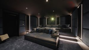 A luxury wellness and entertainment hub: cinema room, glass-fronted wine cellar, full gym, sauna, steam room, and cold plunge. A games room with designer bar, a cozy second living area, and two garden-level en-suite bedrooms create the perfect retreat. Additional features include a panic room, storage, machine room, and full underfloor heating.