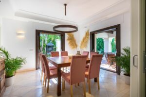 Additional features include a private gym, secure garage, and 24-hour community security. Surrounded by mature gardens, the villa provides a peaceful retreat while being moments from the beach. Whether relaxing by the pool or enjoying outdoor dining, Villa Vanilla offers a refined lifestyle in one of Marbella’s most desirable neighborhoods.