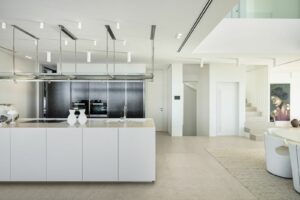 With a total of 799 square meters of refined architecture set on a 1,431 square meter plot, the home spans three meticulously crafted levels. Inside, a generous 880 square meters of living space welcomes you, while 365 square meters of terrace areas seamlessly blend indoor and outdoor life. The outdoor spaces elevate entertainment with a sleek kitchen and barbecue area—perfect for hosting gatherings or savoring quiet, sunlit moments.
