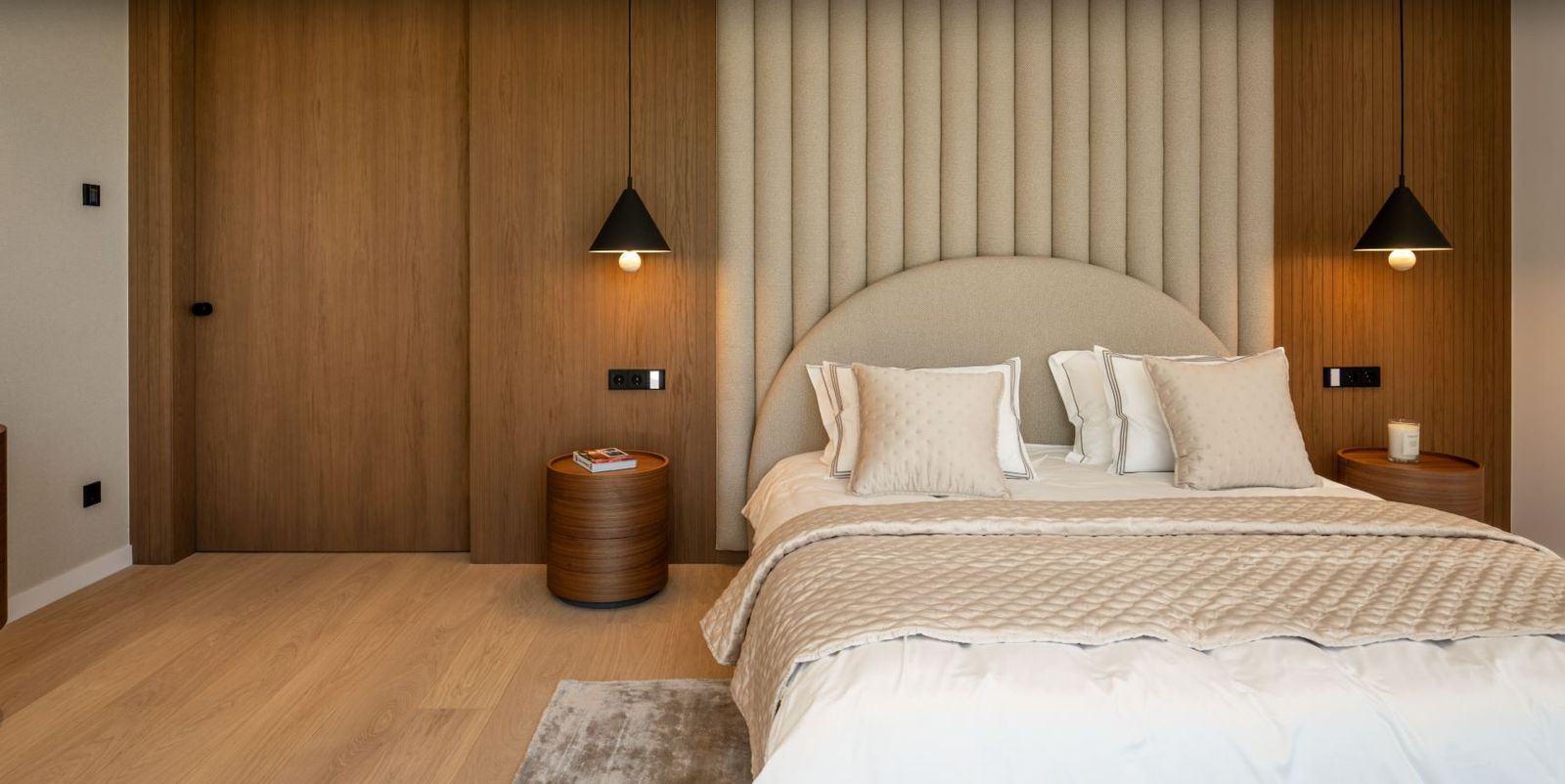 Upstairs, three generously proportioned bedrooms each enjoy private terraces, offering tranquil views of the surrounding landscape. The standout master suite is a true sanctuary, complete with a private lounge, bespoke walk-in wardrobe, and a luxurious spa-inspired en-suite bathroom.