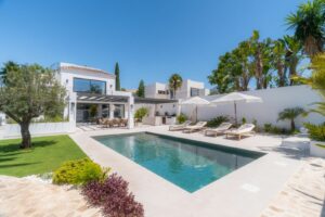 Welcome to a beautifully renovated luxury villa located in the prestigious Aloha / Las Brisas area of Marbella. This elegant home blends timeless Mediterranean character with sleek contemporary design, and enjoys a prime location just minutes from world-class golf courses, exclusive dining, designer shopping, international schools and Marbella’s finest beaches.