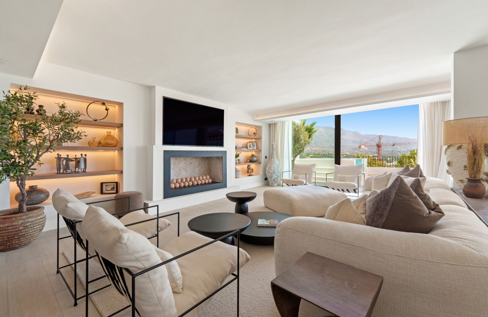 In the heart of prestigious Nueva Andalucía, just minutes from Puerto Banús, this extraordinary five-level 965 m² villa sits on a 1,474 m² plot oriented towards panoramic views of the Mediterranean Sea, La Concha mountain, and the surrounding landscape.