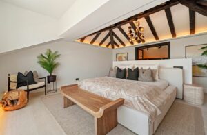 The fully refurbished residence offers six luxurious bedrooms and seven bathrooms, crafted with the highest-quality materials and finishes. The interiors showcase an open-plan designer kitchen with premium appliances, bespoke furnishings, artisan lighting, and elegant flooring.