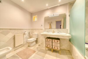 Welcome to an exceptional six-bedroom, six-bathroom family villa set in the heart of Marbella’s prestigious Golf Valley. Blending timeless Andalusian design with modern luxury, this home has been thoughtfully designed for both relaxed family living and vibrant entertaining. Inside, bright and spacious living areas flow seamlessly to the outdoors, where a large covered terrace creates the perfect setting for alfresco dining. A bespoke BBQ and bar area makes entertaining effortless, while the beautifully landscaped and completely flat gardens provide a sense of peace and complete privacy. Mature trees frame the oasis-like pool and sunbathing area, reached by elegant oak sleeper steps – a true haven for relaxation.