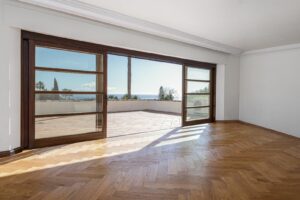 The entrance makes a strong first impression, featuring a double-height hall and wooden ceilings that add warmth without excess.