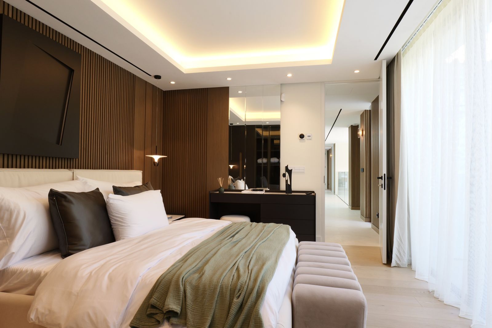 Boasting 7 spacious bedrooms and 8 beautifully designed bathrooms, the villa provides an ideal layout for large families, guests, or those seeking an opulent residence with ample privacy. Every space is bathed in natural light and furnished to the highest standards, ensuring a warm, inviting, and stylish atmosphere throughout.