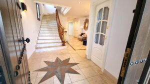 -Main floor: Large living-dining room with fireplace and direct access to the porch and garden, large fully equipped kitchen with utility room, an additional room, a guest toilet and an en-suite bedroom ideal for staff or guests.