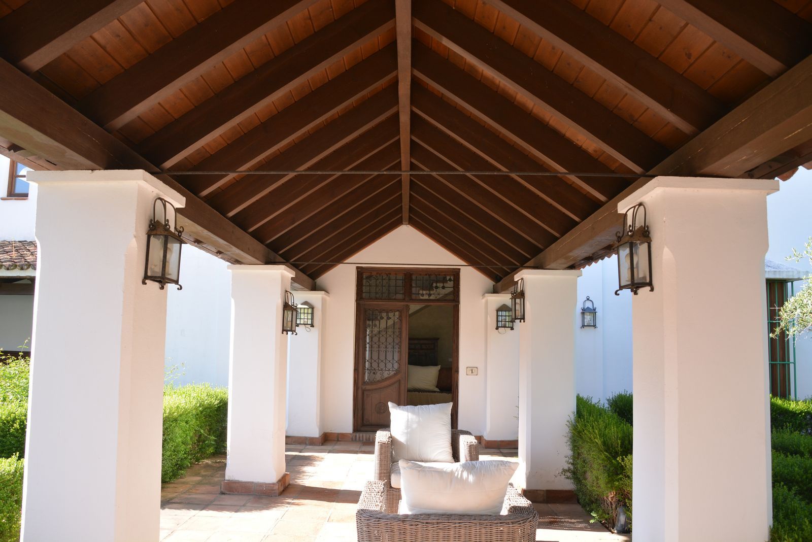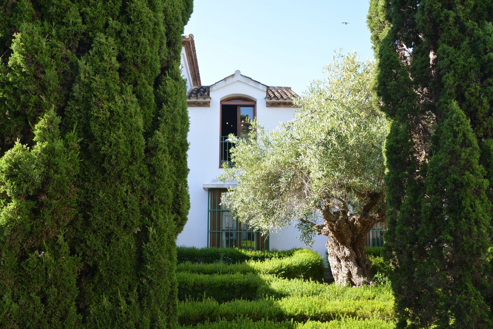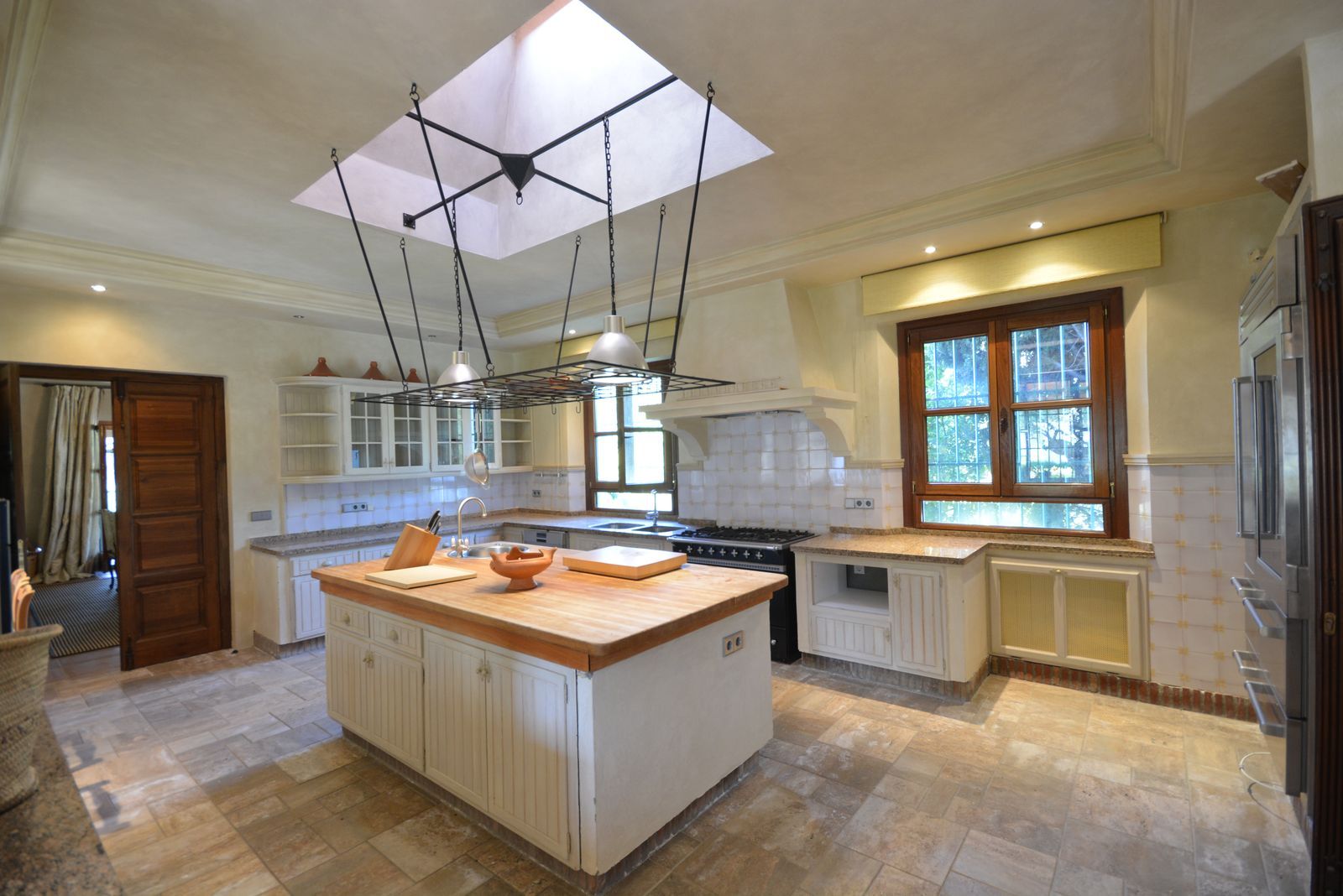The actual distribution has, on the ground level: entrance gardened patios with water features and ancient olive trees, entrance hall with really high ceiling, wooden beams and a majestic staircase that leads up to a gorgeous master bedroom, dressing room and bathroom, plus like a sitting area overlooking the large living room. There is also a very spacious cinema room, a large dinning room with fire place and a large kitchen next to it. On the other side of the hall there are another three double bedroom suites. All this area access a large covered and open terrace which overlooks the garden, pool and forest. This is where the barbeque and outdoor dinning is.