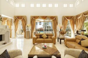 • large heated swimming pool in a beautiful mature garden setting lavish interior decoration to the highest of standards including Italian silk curtains throughout high quality furniture and furnishings
