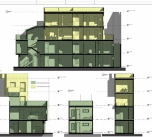 A permit is in place to add an attic level, which would bring the total to four levels. A detailed project report is available.
