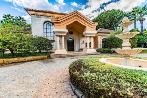 Luxury andalusian style villa that resides magnificently in one of the most prestigious and sought-after urbanizations in Marbella, Guadalmina Baja, only 100 meters from the beach and 5 minutes from Puerto Banus. The highest quality materials have been used in the design and construction of this elegant 8-bedroom home. The natural light throughout is accentuated by high ceilings and a multi-level floor plan. The villa offers a beautiful entrance hall leading to an Andalusian patio, a large fully fitted kitchen, 2 en-suite bedrooms, an elegant formal dining room and an expansive living area that leads to the covered terraces and lavish gardens. The first floor offers 3 large en-suite bedrooms and an elegant master suite with his and hers walk-in wardrobe and a private terrace with garden & partial sea views. This extraordinary property has been especially designed for a luxury lifestyle and offers a dream entertainment area that includes a pool billiard room, a fully equipped fitness suite, a Spa with sauna, jacuzzi, Turkish bath and ice fountain, a cinema room and a signature wine cellar, making this a haven of recreation. The manicured tropical gardens feature a large swimming pool, a small lake with waterfall, and a summer pergola under mature palm trees. The villa enjoys absolute privacy. Other features of this extraordinary property include: garage for 6+ cars, private lift, under-floor heating throughout, domotic system, solar panels, separate staff apartment, etc.