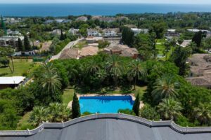 Tucked away in one of Marbella’s most discreet and sought-after residential areas, this timeless estate blends classical European elegance with the calm of lush, mature gardens. Just a few minutes from the heart of town and landmarks like Puente Romano Resort and the Marbella Club Hotel, it offers a rare mix of seclusion and convenience.