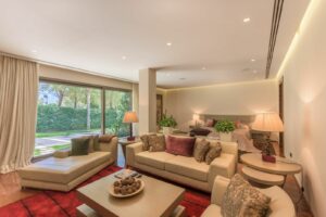 Magnificent luxury house nestled at the foot of the majestic mountains is definitely one of the most prestigious properties on the coast. Highest quality has been used throughout; building materials, technical and communications equipment are set to redefine the standards of luxury. Elegant interior design offers classic clarity of forms with exciting modern accents, and the noble colour palette and artistic decorative elements make it exquisite.