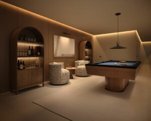 The basement level, is accessible via stairs and elevator, offers a large area along with an electrical room and a technical room. An additional technical room located beneath the sunbed area houses the pool installations.