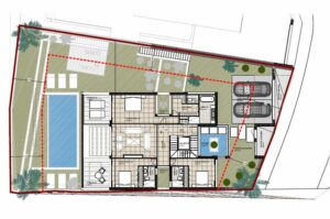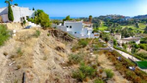 Residential plot for sale in a gated community in Benahavis by La Alqueria. The plot is 588m2, west facing with open views to the golf. There is a basic construction project in place for a villa of 435m2. A fantastic plot in a privileged location close to local amenities, a short drive to the beach, Marbella and Puerto Banus.