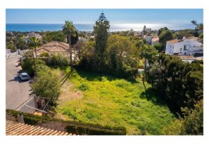 Elevated 1,306 m² plot for sale in the established residential area of El Rosario, Marbella, offering open views towards greenery and the Mediterranean Sea.