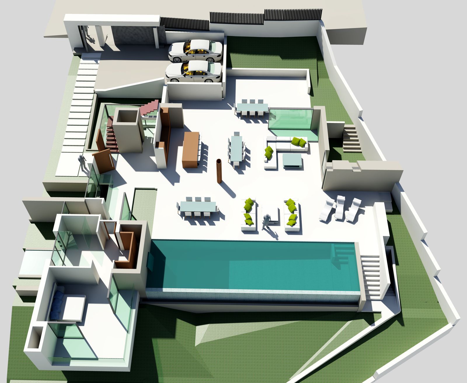The project envisions a villa with 575.95 m² of constructed area, designed according to modern architectural principles, featuring: