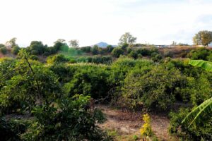 The entrance to the warehouses has an esplanade of 500 m2 asphalted and a magnificent viewpoint with views to the mountain and the rest of the land of the plot composed of fruit trees and a small farmhouse.